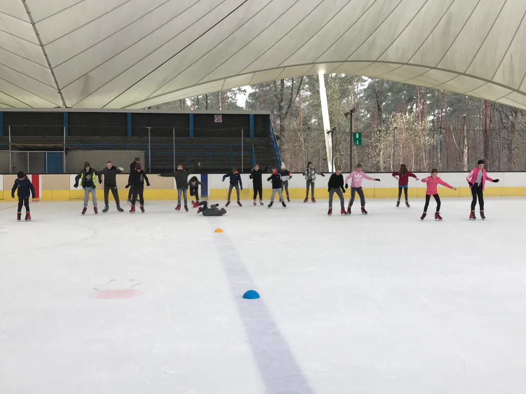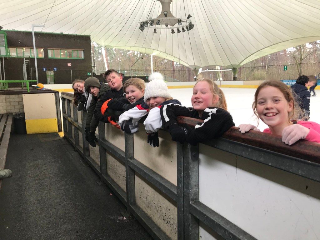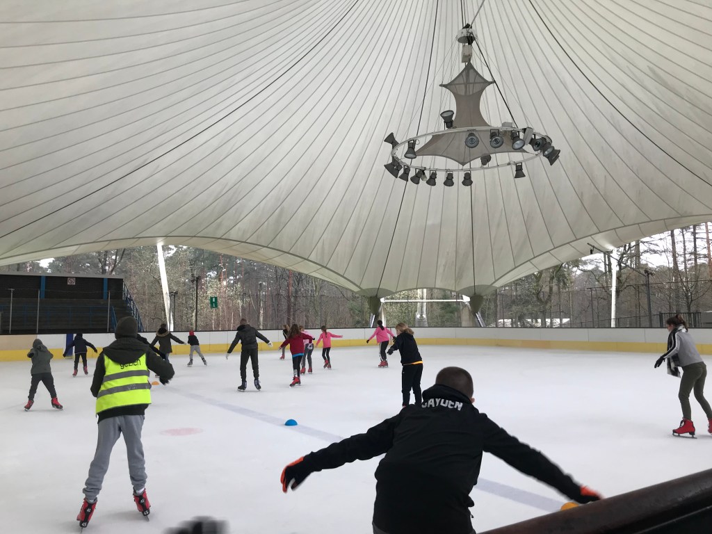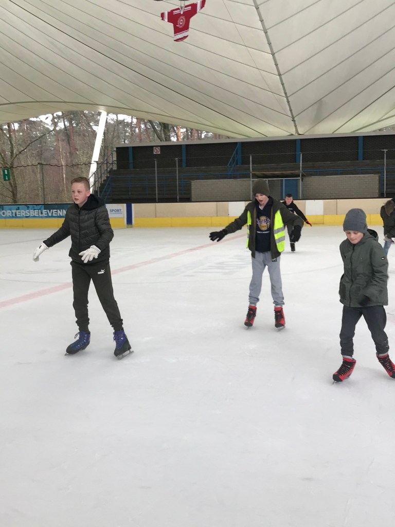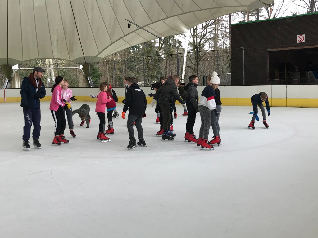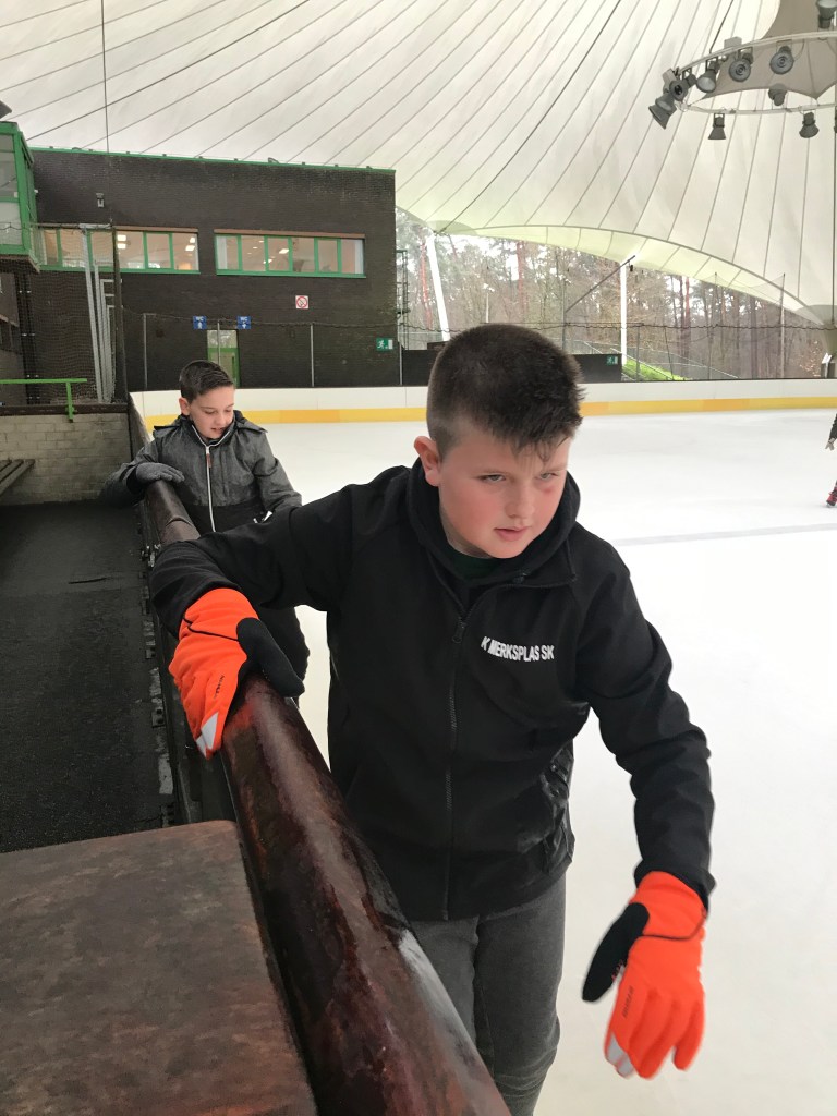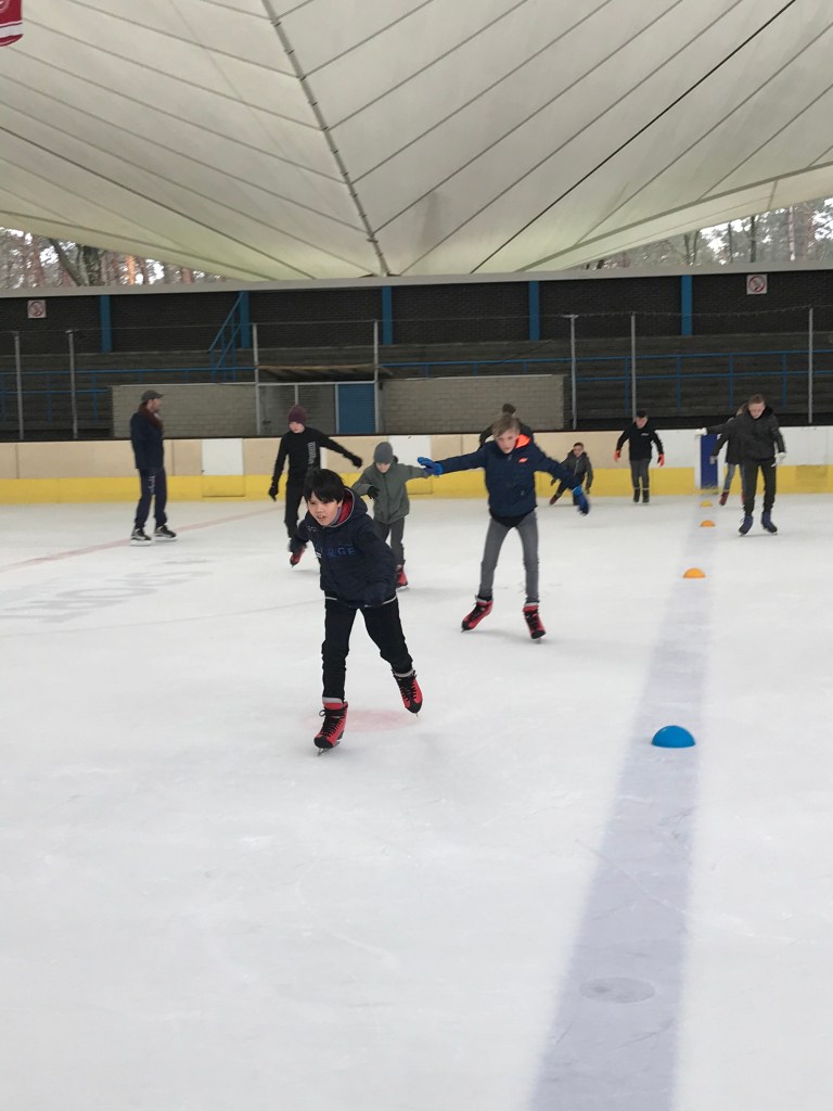 De bingoavond wordt uitgesteld want gisteren konden we met z’n allen gaan kijken naar een open training van de ijshockey! Dat was cool!