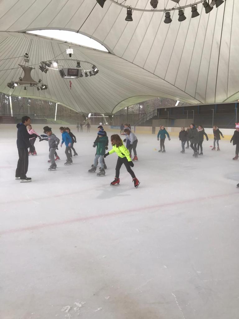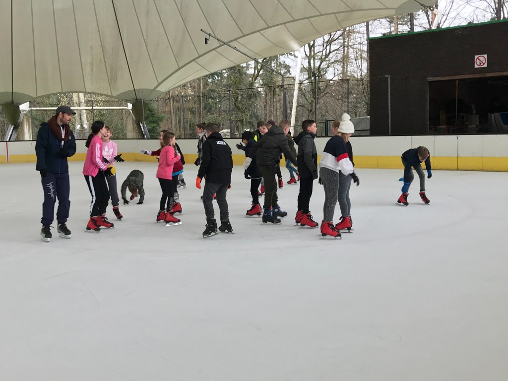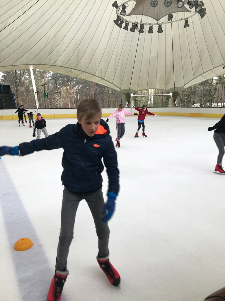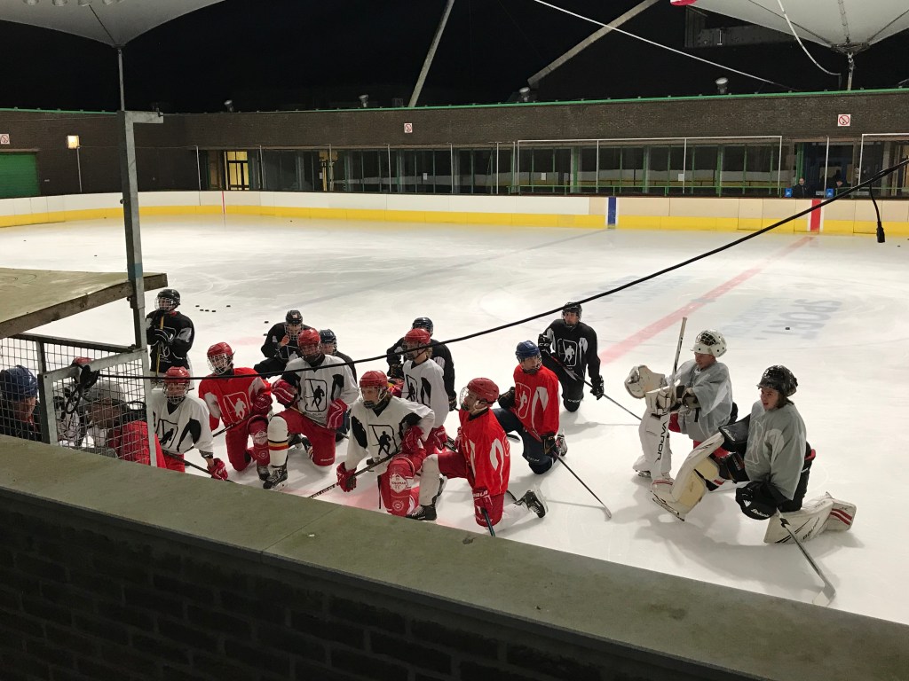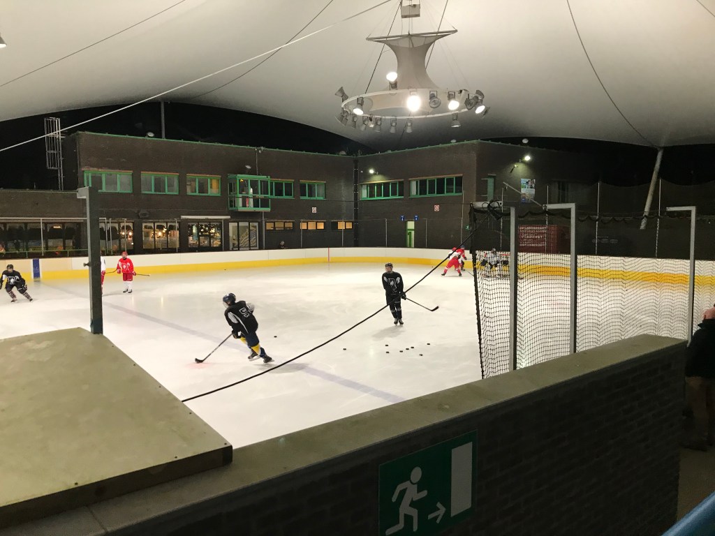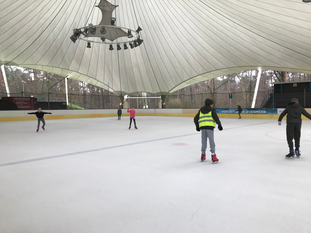 De bingoavond wordt uitgesteld want gisteren konden we met z’n allen gaan kijken naar een open training van de ijshockey! Dat was cool!