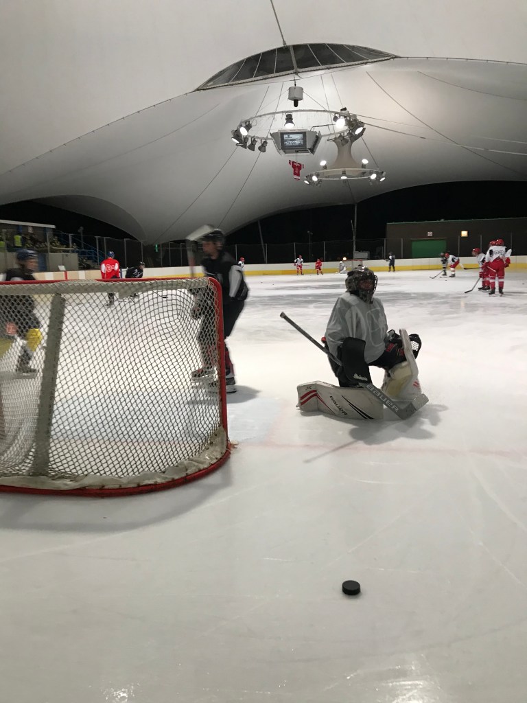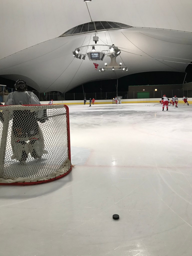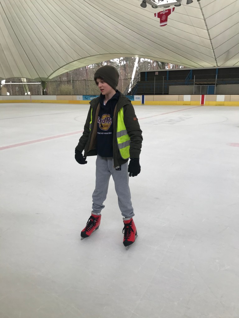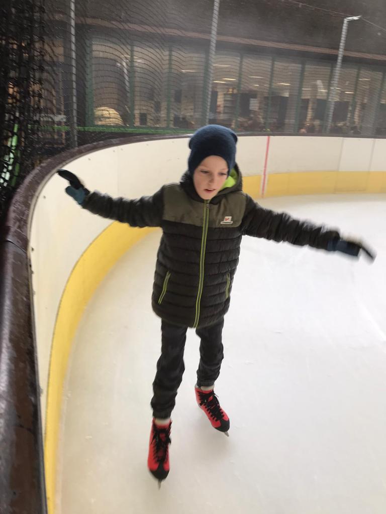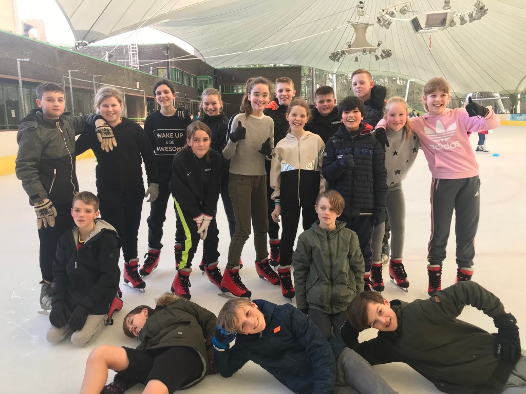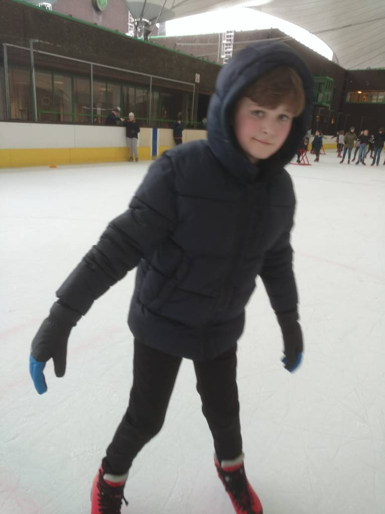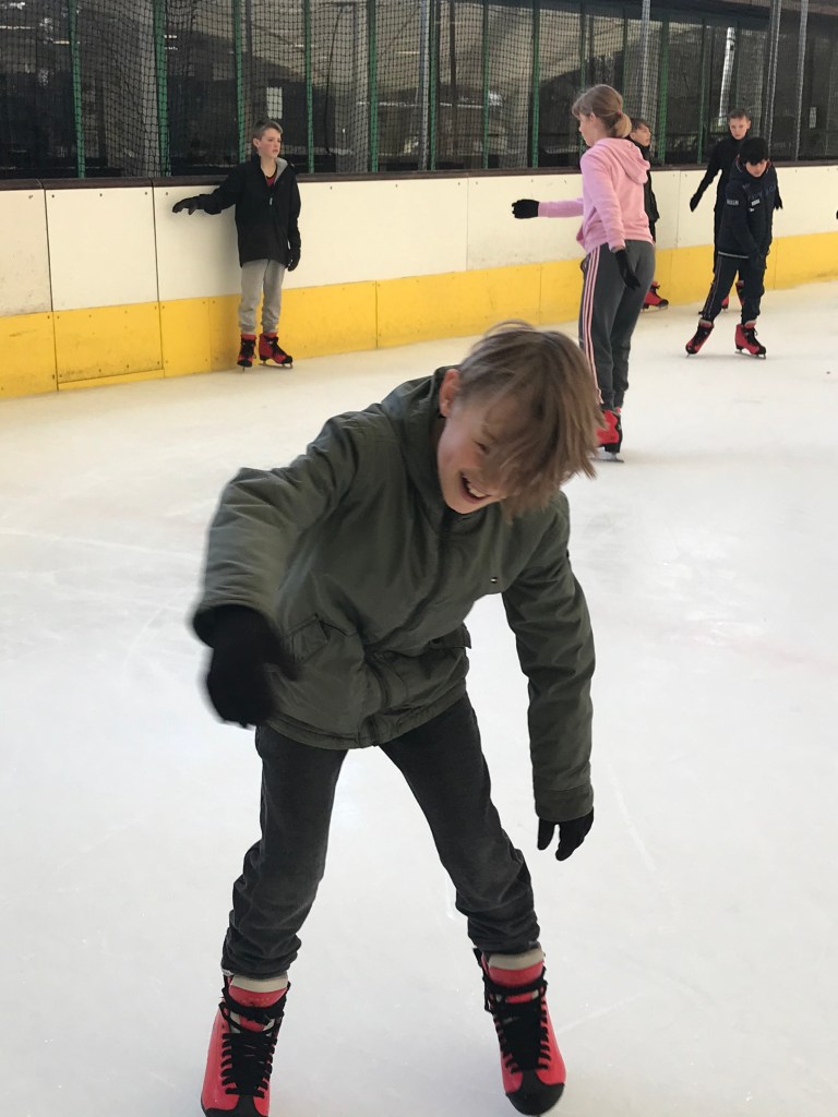 De bingoavond wordt uitgesteld want gisteren konden we met z’n allen gaan kijken naar een open training van de ijshockey! Dat was cool!